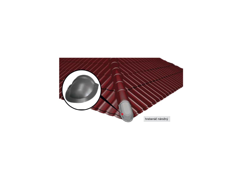 Nárožní ukončení se využívá pro uzavření hřebenáče u plechových střešních krytin, zejména u valbových střech.